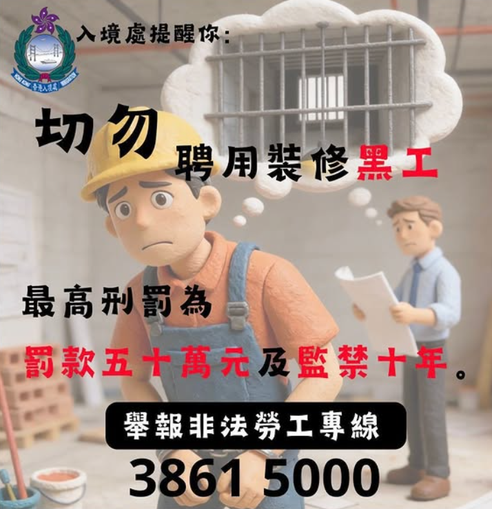 【點新聞報道】入境處展開針對非法勞工從事裝修工作的執法行動,近日搜查超過300個裝修單位,經網上巡查又發現有不法分子透過社交平台宣傳以平價裝修服務作招徠,共拘捕7名黑工及一名聘請黑工的僱主。