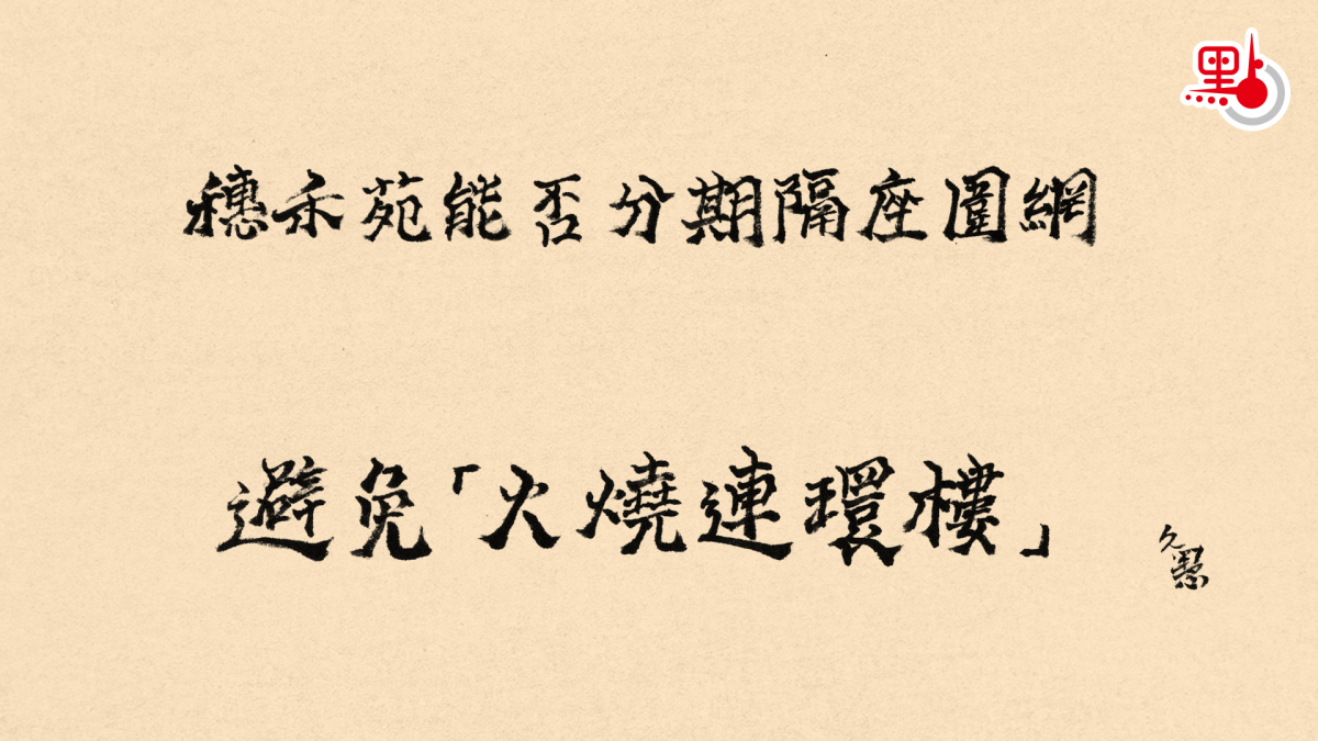 第四,宏福苑大火發生翌日,已經有一名女士致電電台,稱曾擔任業主立案法團職務,自家屋苑大維修時,選擇分期進行,有效避免了「火燒連環樓」。到了該月30日,時任工程界立法會議員盧偉國亦公開強調,未來不應該一次過將多幢大廈圍起進行維修,而應分期逐幢進行,減低火災風險。這近乎常識的建議,為何至今未被採納?為何仍未有具體立法措施,規管大維修工程須分期進行?特別是穗禾苑此類距離近的大廈,應該實施「隔座圍網」,一座圍了網,相連那一座就不圍,避免火乘風勢蔓延。