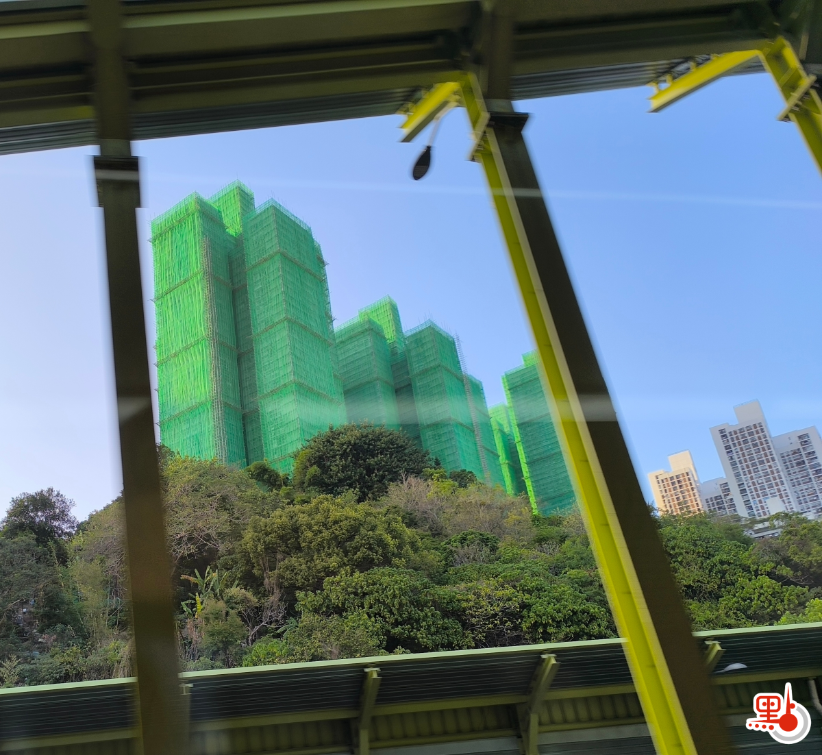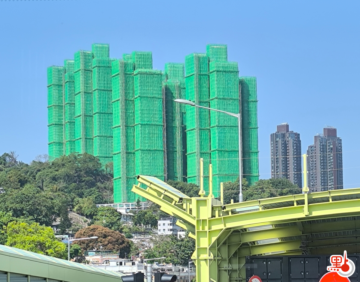 首先,筆者緊急翻查新聞,相信這些棚網是2月中,穗禾苑透過建造業議會安排集體採購的具阻燃功能的新棚網。當時沙田區議員鄧肇峰在社交平台指,穗禾苑9座樓中,其中3幢在拆除棚網後,已改用吊船進行餘下外牆修葺工序。換言之,無須再圍網,由讀者提供的相片,亦見僅6座圍着綠色新棚網。