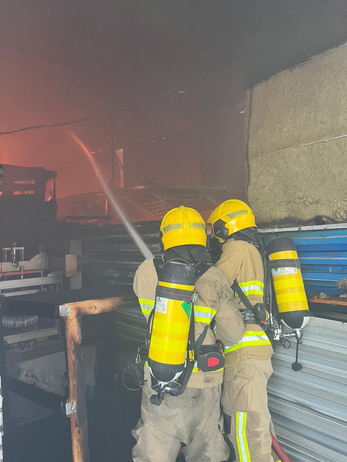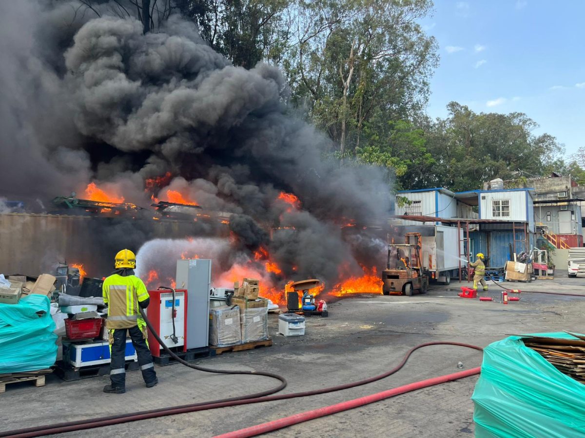 米埔小磡村一個回收場發生火警,消防處正進行滅火行動。(消防處fb)