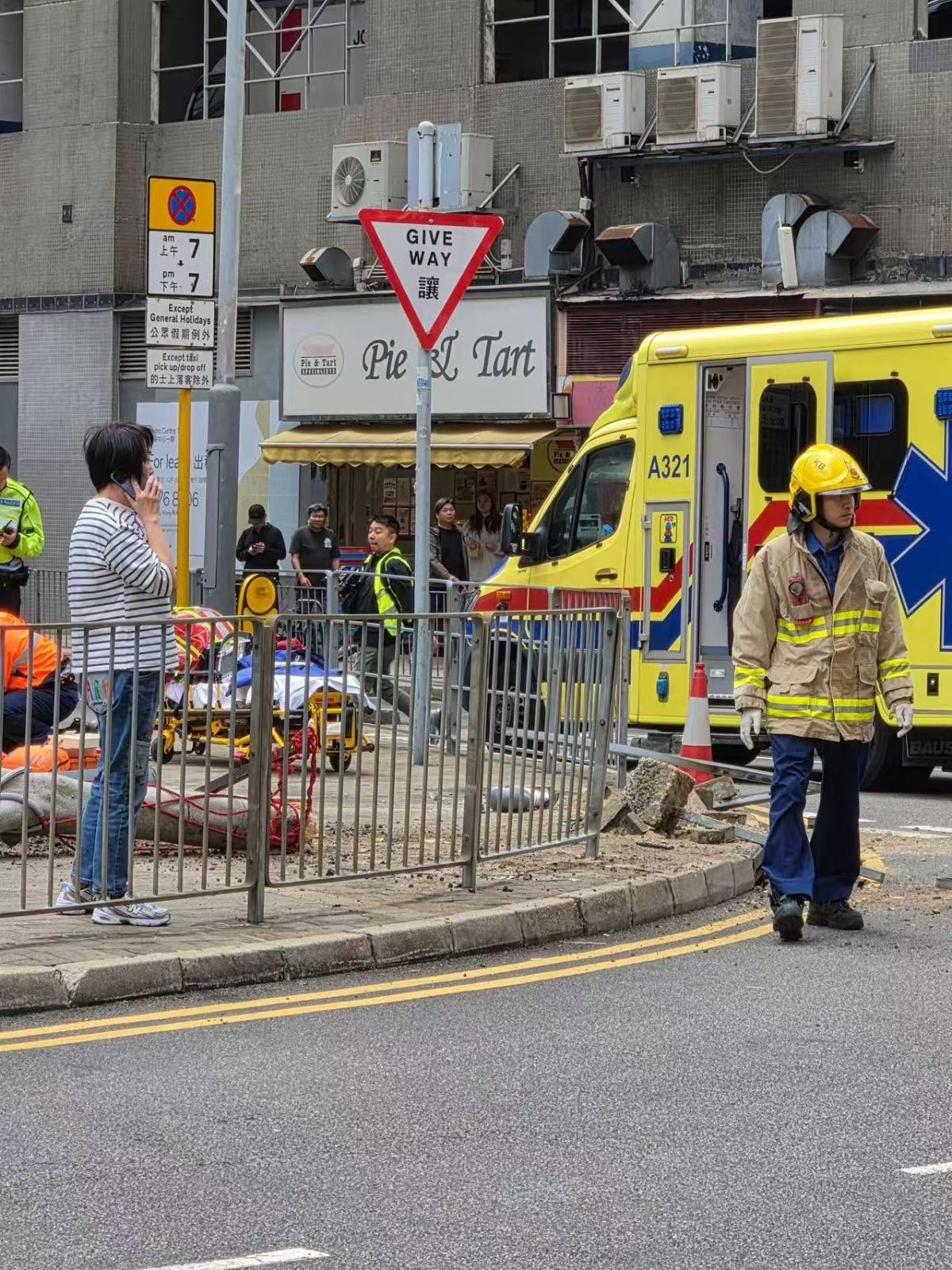 【點新聞報道】今日(16日)中午12時許,一輛私家車駛至九龍灣臨興道21號對開時懷疑失控剷上行人路連撞多名途人。警方接報趕至封鎖現場調查,由救護員為傷者進行急救及送院治理。
