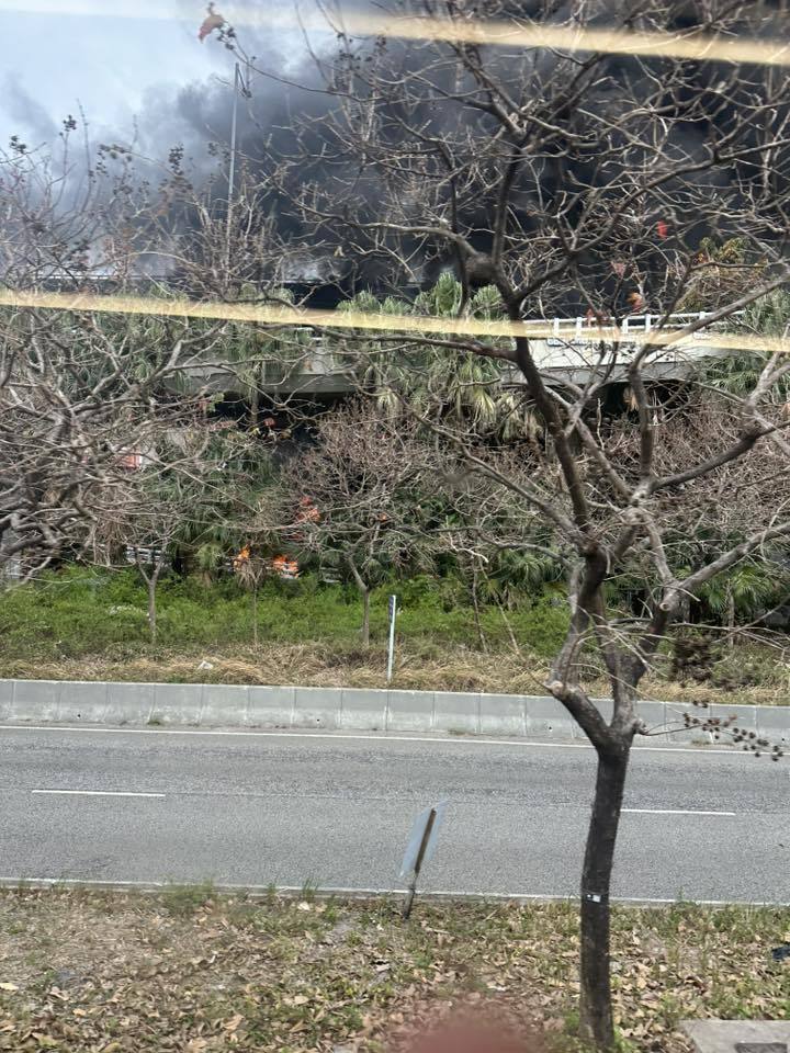 火警中暫時無受傷報告,消防接報趕至現場,目前正在灌救。