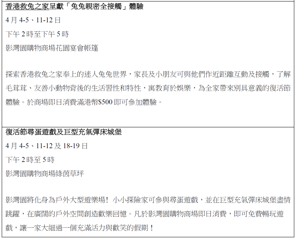 地點:影灣園購物商場棕櫚庭