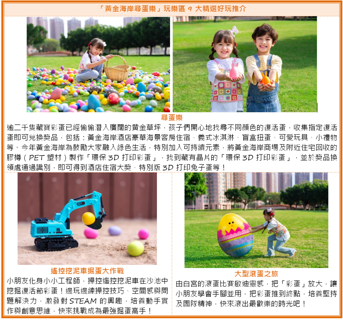 復活節親子必到!黃金海岸尋蛋樂暢玩9大玩樂區 兒童市集免費入場