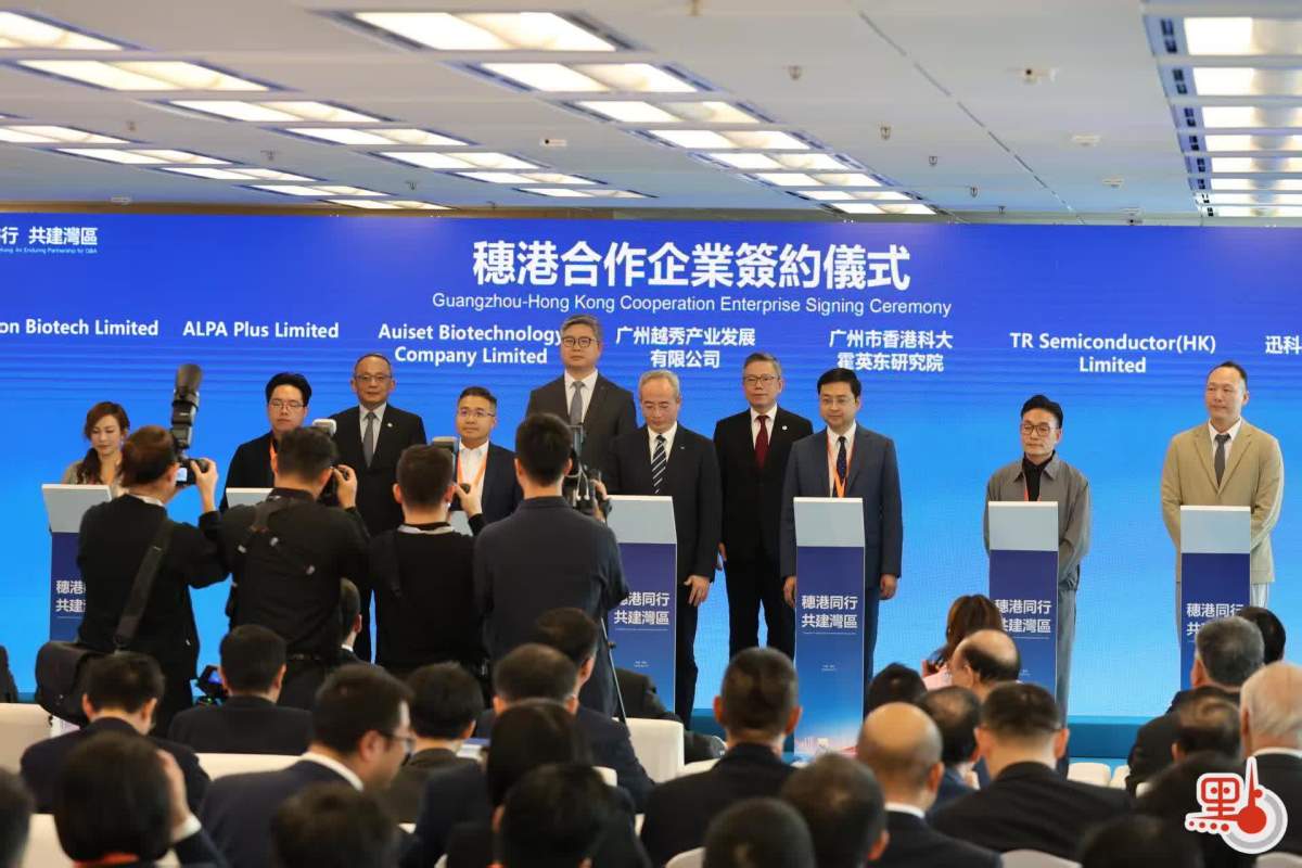活動現場,穗港科技和產業融合創新中心正式揭牌,一批合作項目集中簽約,標誌着穗港科技創新與產業創新融合進入新階段。