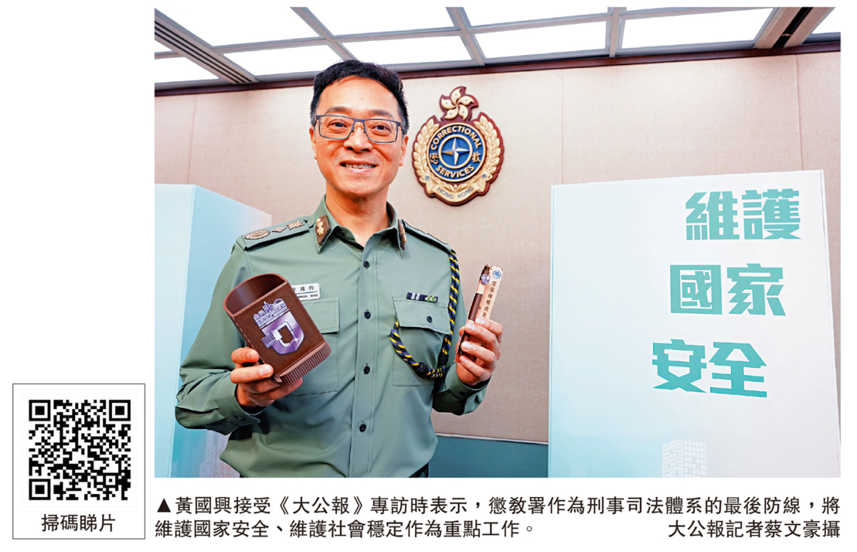 今年4月15日是第11個「全民國家安全教育日」,懲教署署長黃國興接受《大公報》專訪時表示,懲教署作為刑事司法體系的最後防線,將維護國家安全、維護社會穩定作為重點工作,杜絕在囚人士滋生危害國家安全的思想與行為,堅決防止監獄成為反中亂港的基地。