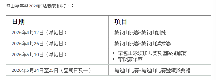 若想了解更多活動詳情,可訪問「包山嘉年華2026」專題網頁。