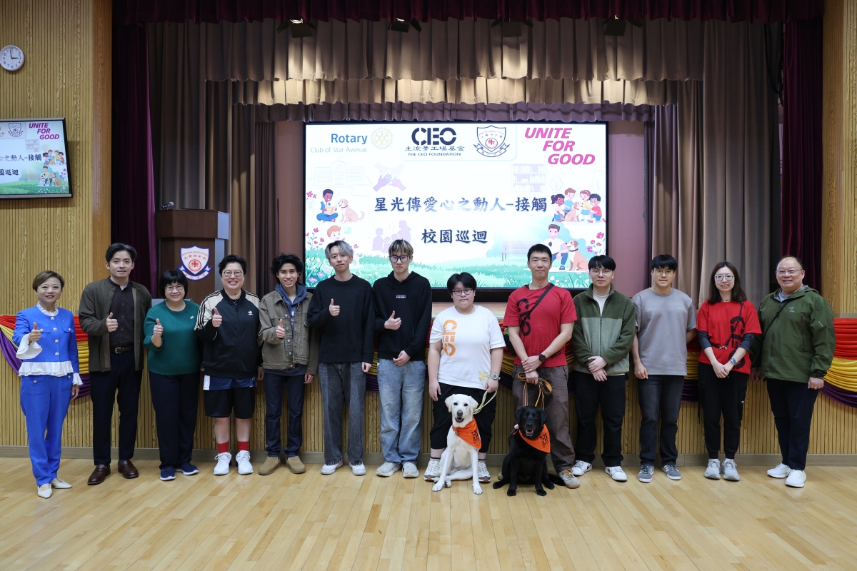 仁濟醫院王華湘中學於3月11日迎來一場溫暖而療癒的特別活動——由學校聯同星光大道扶輪社及CEO主流夢工場基金合辦的「星光傳愛心之動人—接觸:校園巡迴」活動。當天,CEO主流夢工場基金帶來兩位神秘嘉賓:拉布拉多義工狗STAR及JUNE,牠們以溫柔可愛的模樣,瞬間成為全場焦點,與200多名中四及中五學生展開近距離互動,帶來一場難忘的「狗狗社工」體驗。