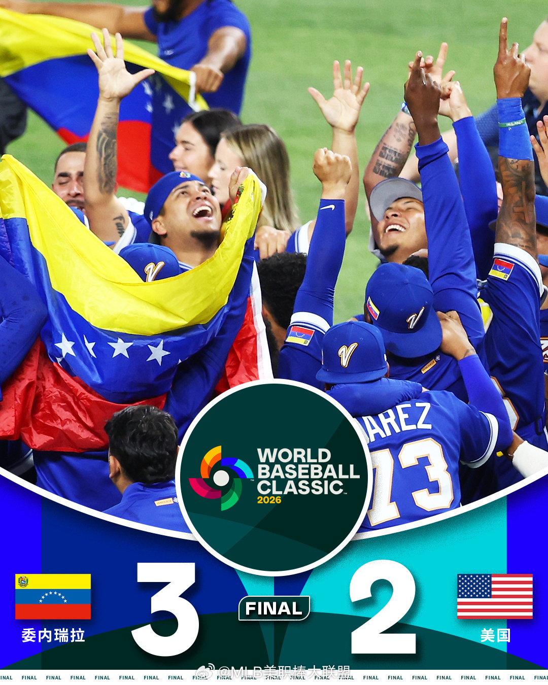【點新聞報道】據新華社消息,3月17日晚在美國邁阿密舉行的2026年世界棒球經典賽決賽中,委內瑞拉隊以3∶2擊敗東道主美國隊,隊史首次奪得該項賽事冠軍。