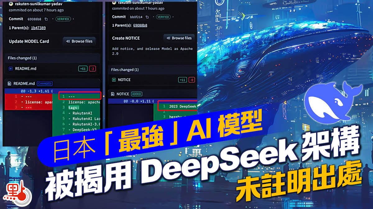 【點新聞報道】日本樂天集團17日發布號稱「日本國內規模最大、性能最強的」人工智能(AI)大模型Rakuten AI 3.0,很快被發現其核心架構實際上來自中國的人工智能模型DeepSeek V3,但並未對原創者進行任何標註,引發批評。