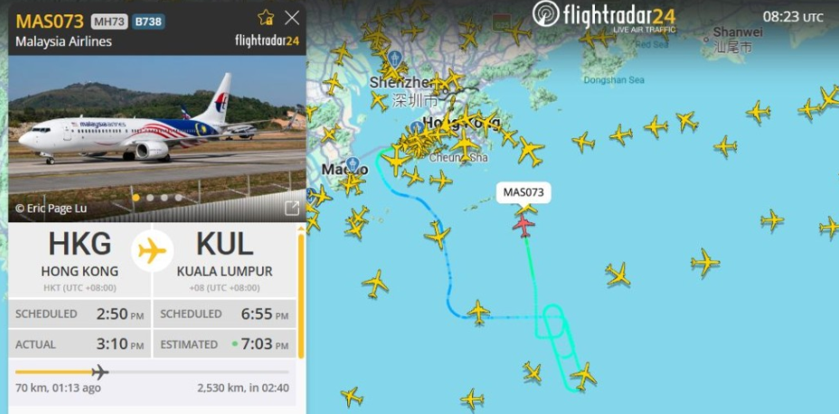 該航班於下午2時48分從香港起飛。根據航班追蹤網站資料,客機起飛後不久,曾於香港東南面對開海域上空盤旋。至下午約4時20分,航班仍在折返途中。
