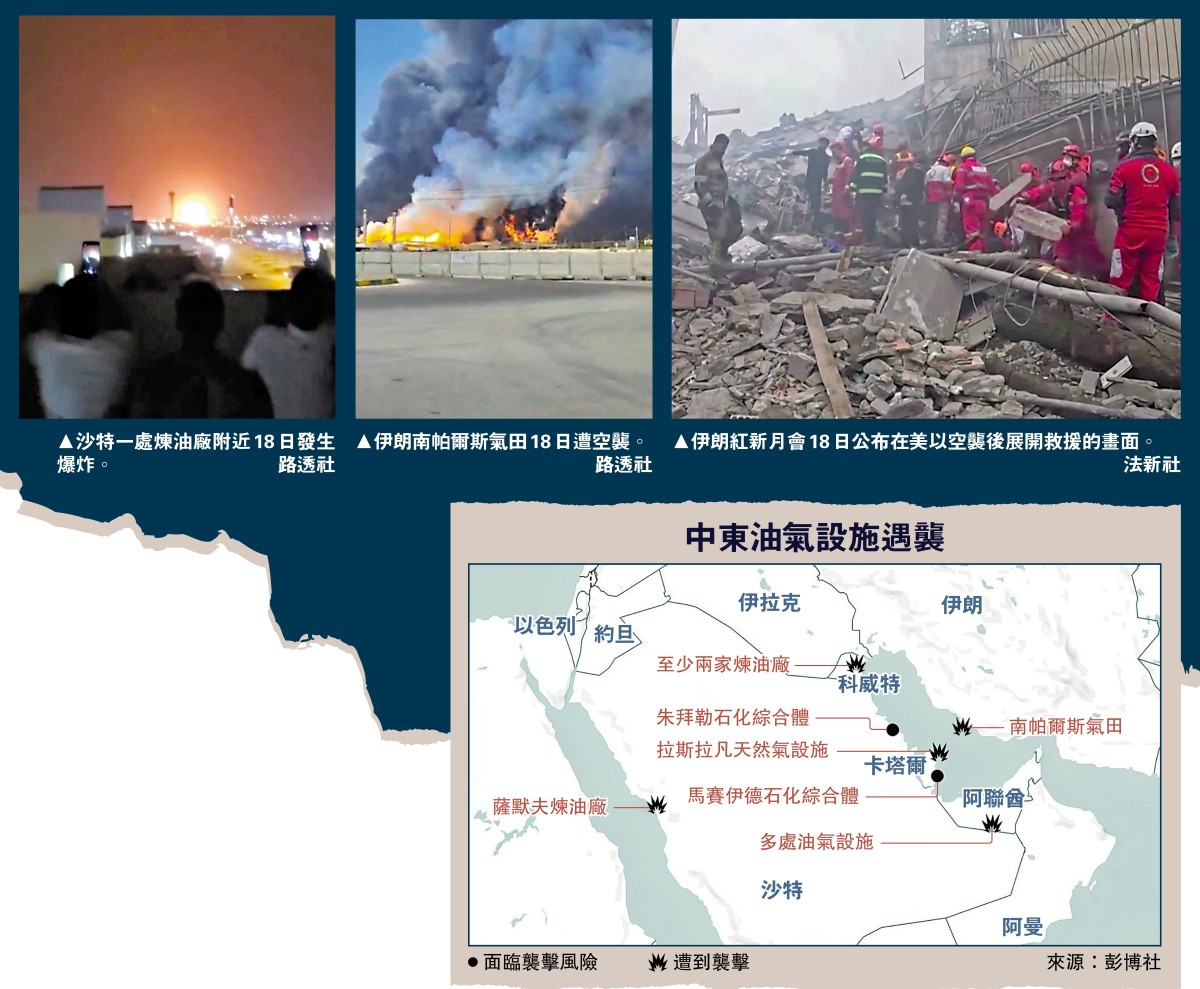 •伊朗南帕爾斯氣田和部分石油化工設施18日遭空襲,伊朗隨即宣布對與美國有關的能源設施發動報復性打擊,並點名沙特、阿聯酋和卡塔爾的能源設施。