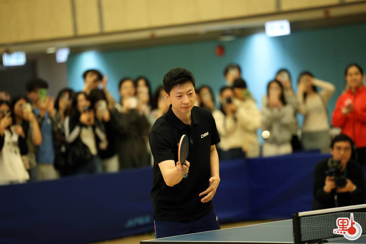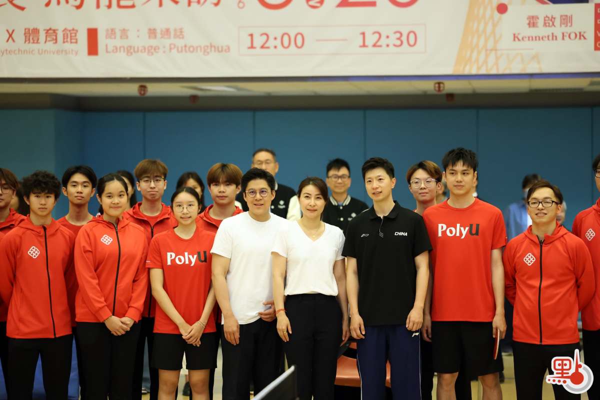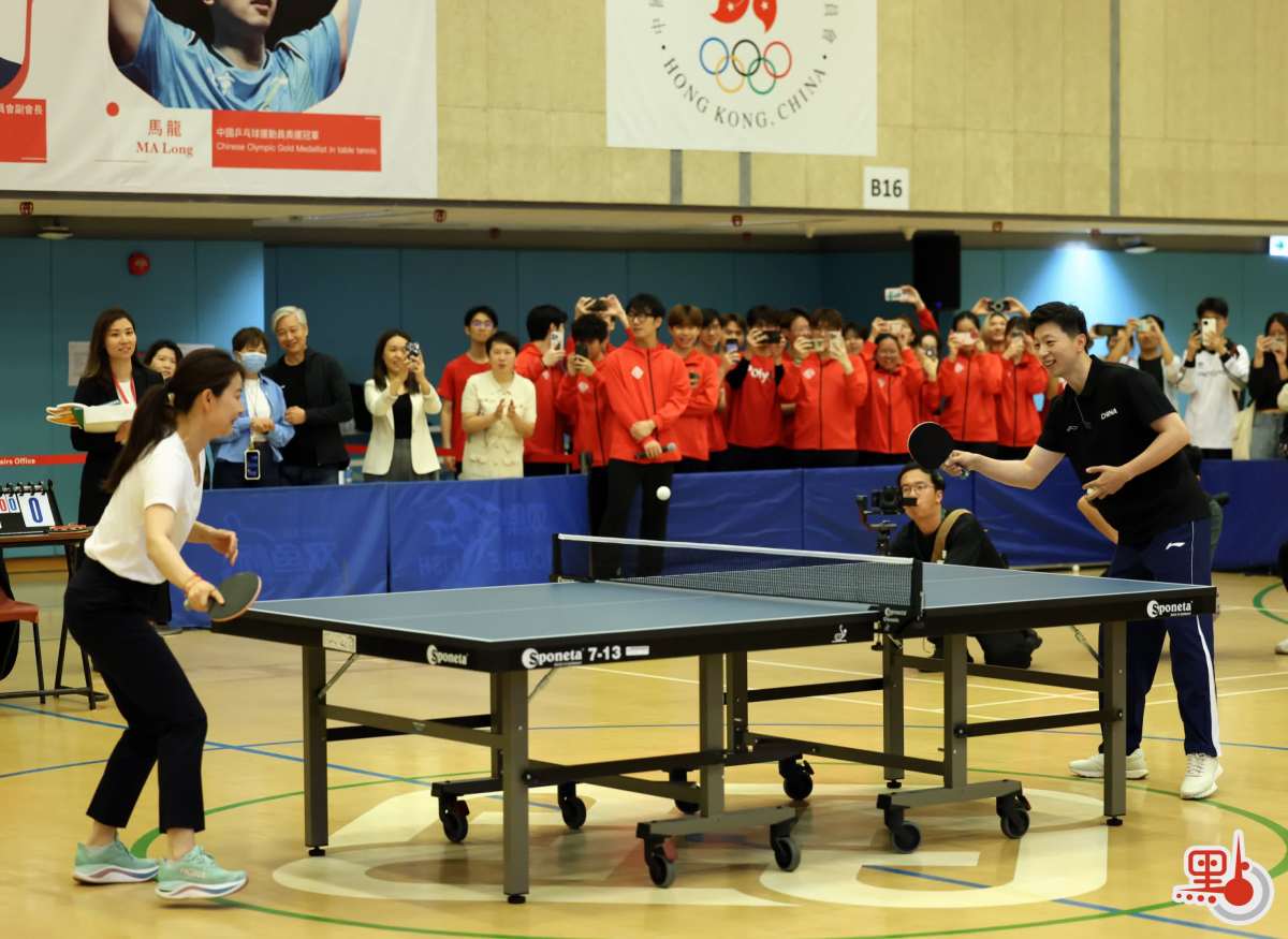 分享會結束後,馬龍與霍啟剛、理大乒乓校隊在體育館進行對打交流,郭晶晶也落場參與。近百名學生在場館觀戰,一睹奧運冠軍英姿,氣氛熾熱。