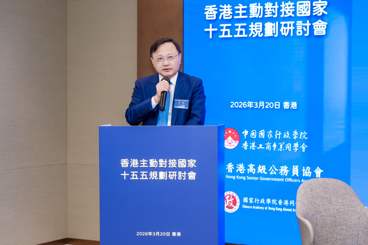 是次研討會由中國國家行政學院(香港)工商專業同學會、香港高級公務員協會、國家行政學院香港同學會、香港公務員總工會、香港特區政府公務人員聯會、香港經濟智庫聯合主辦,旨在深入學習貫徹2026年全國兩會精神,加深香港各界對國家「十五五」規劃的理解,凝聚香港政商界主動融入和服務國家發展大局的共識。