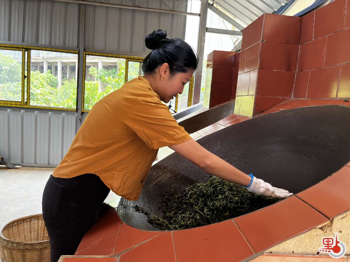 他們手把手教我炒茶:兩百七十度的鐵鍋,嫩綠的鮮葉倒下去,激發出啪啦的聲響和濃烈的青草氣。我笨拙地翻炒,既怕手指碰到鍋底燙手,又怕翻得不夠快讓茶葉焦掉。別看茶葉輕飄飄的,十斤的鮮葉一鍋下去,手臂很快就酸了。大土在旁邊笑着指導,他的手掌粗糙厚實。