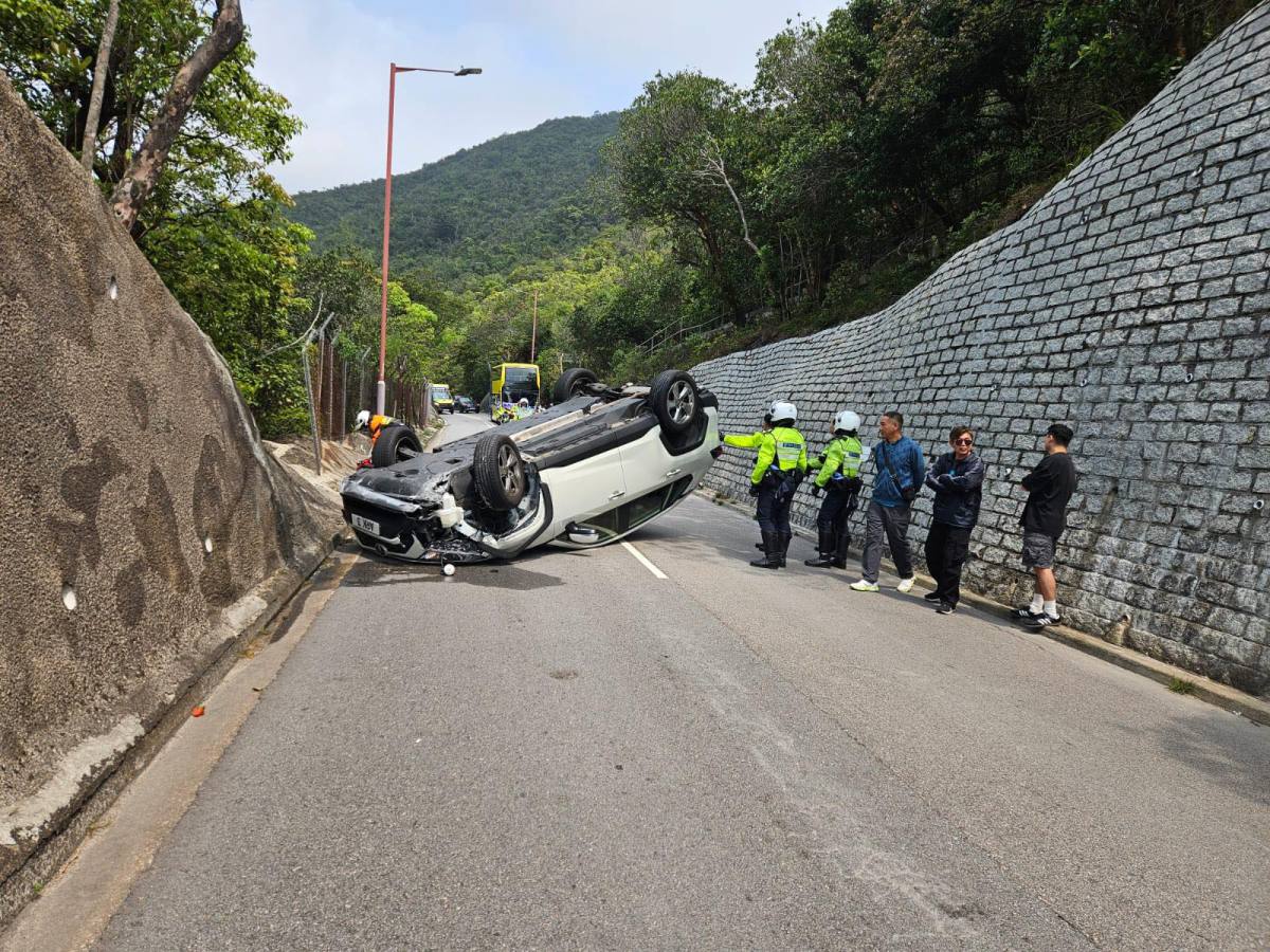 【點新聞報道】石澳道近爛泥灣今日(22日)發生交通意外。上午約11時半,一輛私家車在上址懷疑自炒,四輪朝天,男司機受輕傷且一度受困,其後自行爬出車外報警求助。救援人員到場後將司機送往東區醫院治療。