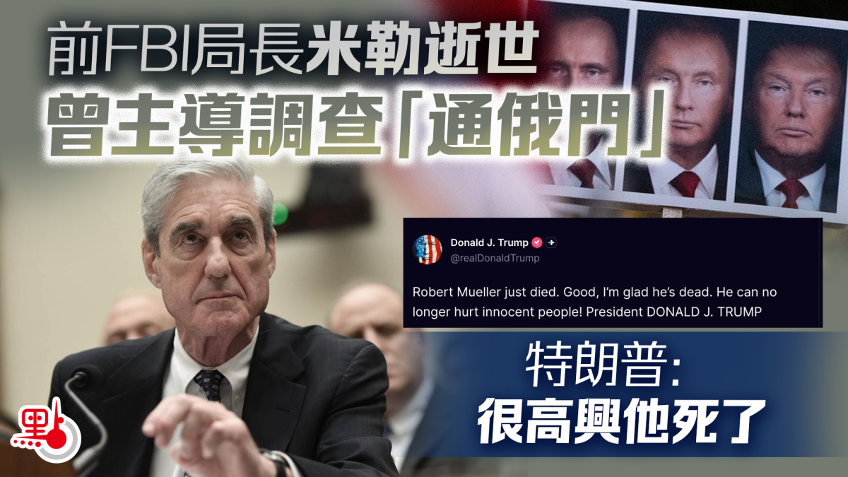 【點新聞報道】當地時間3月20日,前美國聯邦調查局(FBI)局長米勒(Robert Mueller)離世,終年81歲。美國總統特朗普則對此表示:「我很高興他死了」(I'm glad he's dead)。