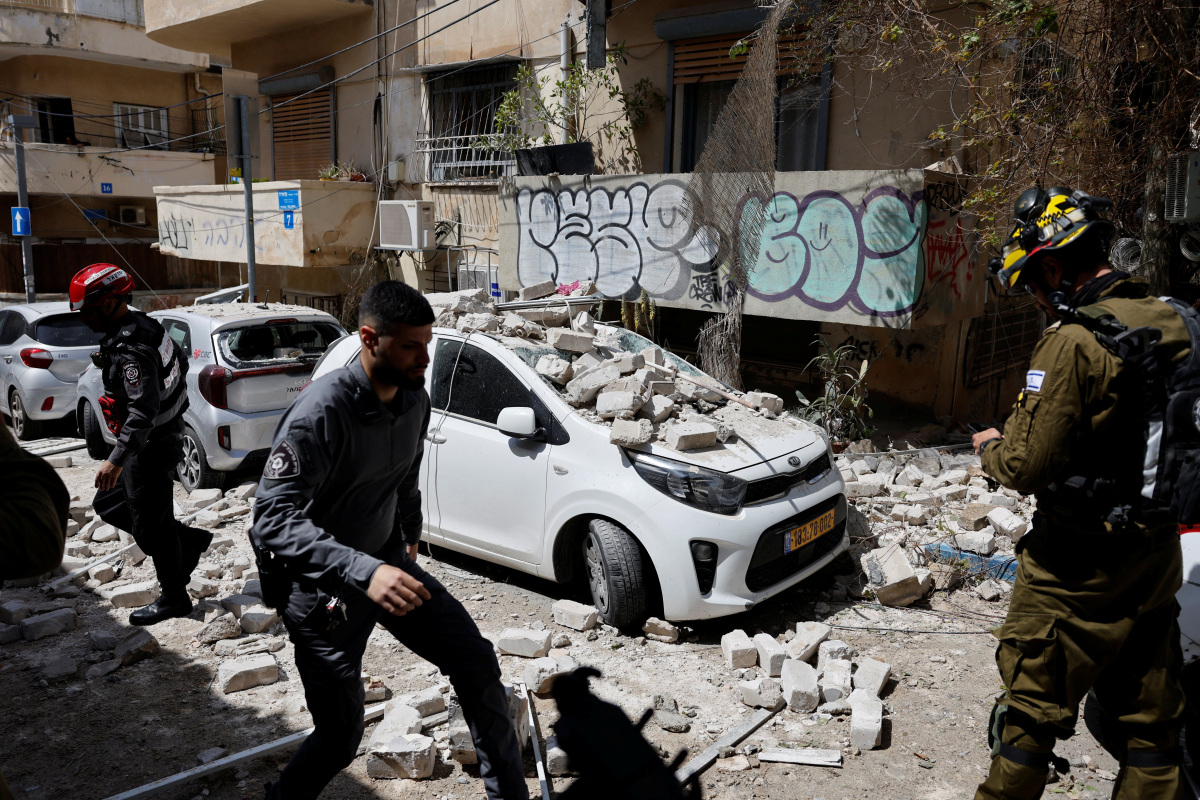 網上最新流傳的視頻及圖片顯示,特拉維夫市一幢建築物一側被炸毀,現場一片狼藉,大量磚塊瓦礫掉落,有車被砸毀。