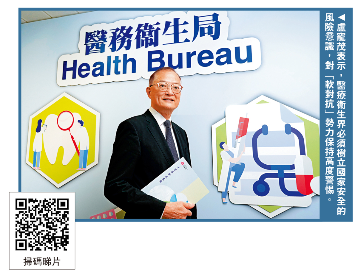 今年是國安法實施六周年,香港已從由亂到治,進入由治及興的新階段。醫務衞生局局長盧寵茂近日接受《大公報》訪問時表示,本港醫療衞生界曾面臨威脅,少數不法分子企圖動搖社會安定,醫療衞生界必須樹立國家安全的風險意識,對「軟對抗」勢力保持高度警惕。