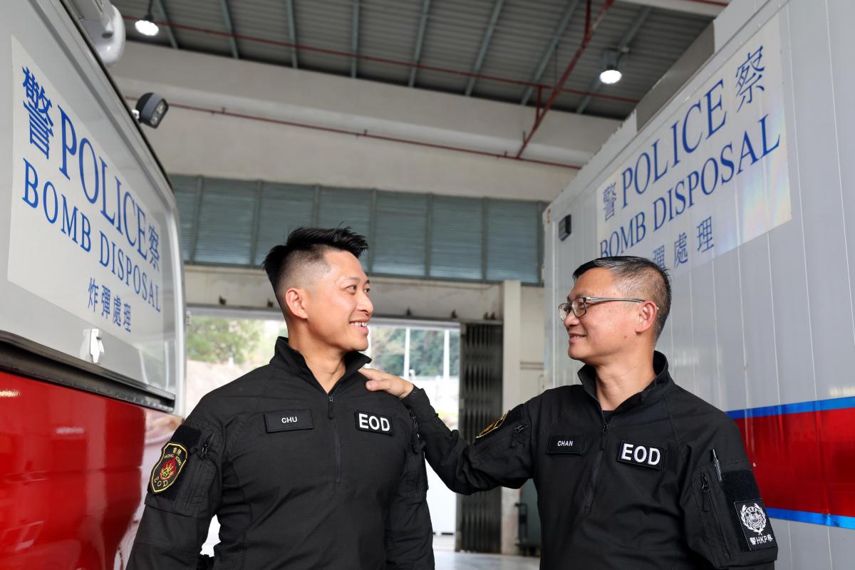 警署警長陳光鴻從1999年起調任爆炸品處理課,其後獲挑選接受專業拆彈訓練,成為爆炸品處理主任助手。雖然外界常以「拆彈專家」統稱他們,但陳光鴻介紹,爆炸品處理其實是一個團隊任務。當爆炸品處理主任身穿近80磅重防爆衣近距離處理爆炸品的一刻,身為助手的他和負責後勤工作的同事,需在旁邊負責無縫協助。三個無分彼此的拍檔,互相照顧,分別代號被稱為「No.1」、「No.2」及「No.3」。