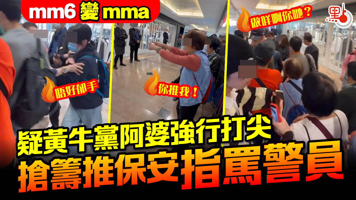 【點新聞報道】海港城日前發生MMA事件,有網民於社交平台上載影片,顯示潮牌Supreme 聯乘MM6(Supreme × MM6)發售日,一班疑似「黃牛黨」阿婆強行打尖,被保安要求離開,仍賴死唔走,還搶籌推撞保安,並指罵警員。影片引來網民熱議,「mm6變mma」、「好心就專業啲,早啲去排唔好玩打尖,咁難睇」。