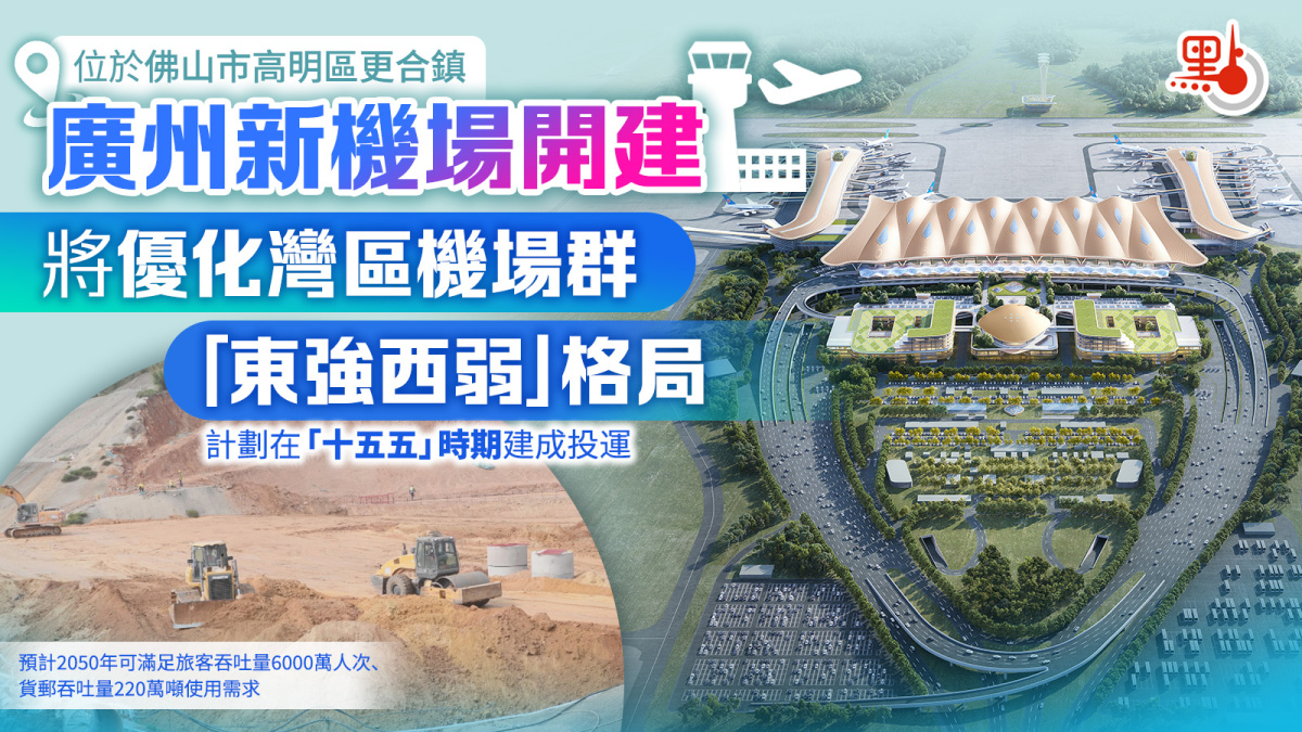 數據顯示,位於佛山市高明區更合鎮的廣州新機場,本期工程項目總投資超418億元人民幣,將建設2條遠距平行跑道、建築面積約26萬平方米航站樓等,預計可滿足年旅客吞吐量3000萬人次、貨郵吞吐量50萬噸的運營需求,計劃在「十五五」時期建成投運。據悉,未來規劃共布局3條跑道和2座航站樓,預計2050年可滿足旅客吞吐量6000萬人次、貨郵吞吐量220萬噸使用需求。