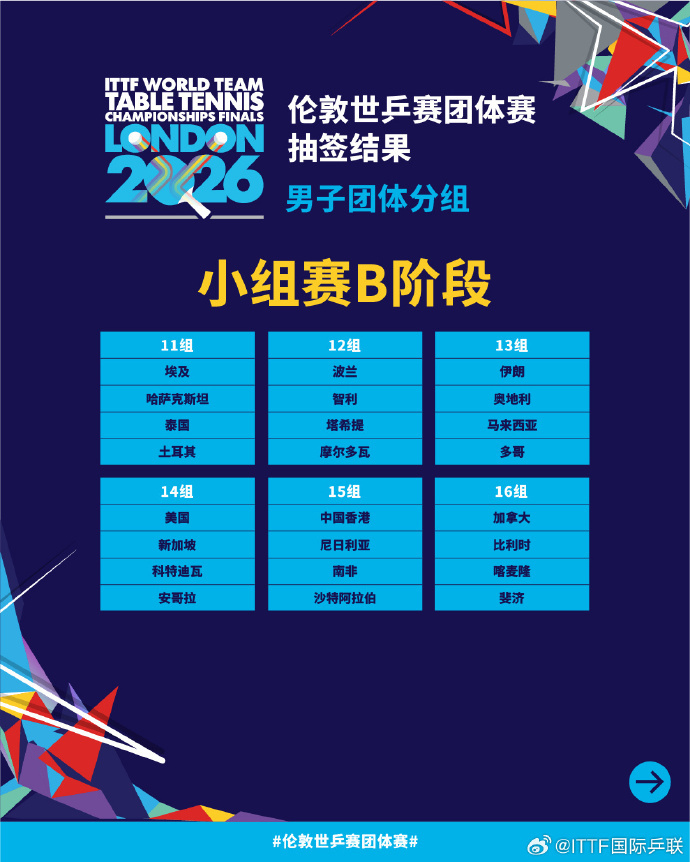 本屆倫敦團體世乒賽定於2026年4月28日至5月10日舉行,具有特殊的歷史意義,它標誌着世乒賽創立一百周年後重返發源地倫敦。