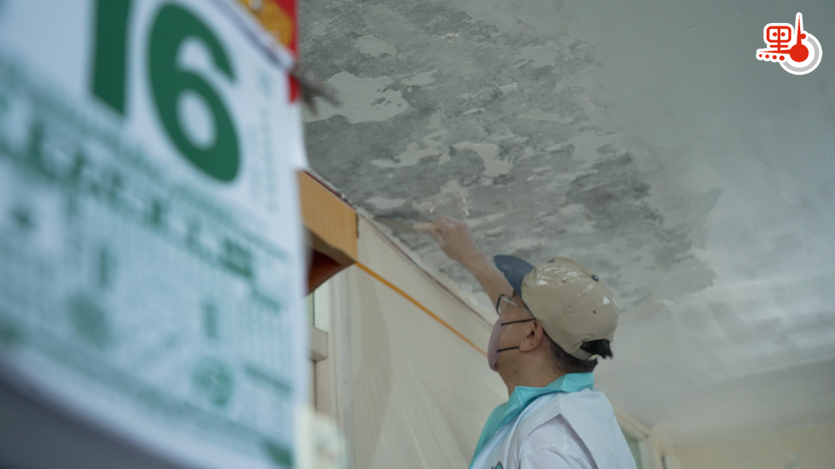 【點新聞報道】3月中旬,春意漸濃。在一個溫暖和煦的清晨,「小修繕,大意義」項目的創辦人之一、67歲的韋寶華和75歲的Tina自帶工具來到位於葵涌公共屋邨的王小姐家中,他們今天的任務是解決王小姐家天花板甩灰的問題。