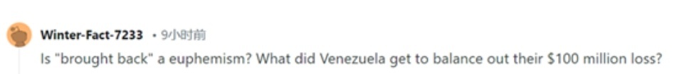 「『帶回來』是委婉的說法嗎?委內瑞拉得到了什麼來彌補他們損失的1億美元?」 ↓