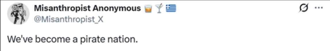 「我們已變成海盜國家」。 ↓