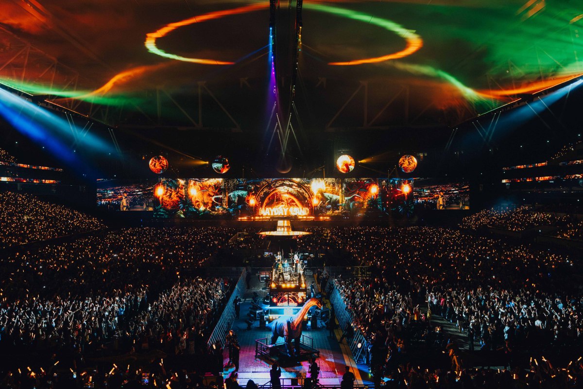 【點新聞報道】五月天去年帶着5525《回到那一天》25周年巡迴演唱會來到香港,今年第二度來到啟德主場館開唱的他們,在春暖花開的生日周,帶着5525+1主題、獻上全新驚喜,除了24日綵排特別場的搶先曝光的「LOVE節奏遊戲」、25日瑪莎與他的雙胞胎兒女拍攝全新的串場影片,魔法螢光棒再度啟動時光機,這回帶領歌迷親歷一場侏羅紀探險,恐龍蛋孵化成恐龍,栩栩如生地跑出螢幕出現在觀眾面前,歌迷和五月天化身為探險員展開「最好的一天」。