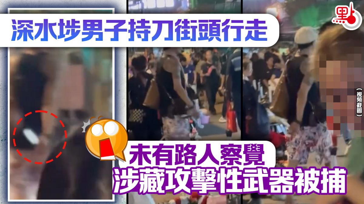 【點新聞報道】日前有一段影片在網上瘋傳,顯示夜晚鴨寮街街頭一名男子手持刀具於街上行走、旁若無人地大幅度擺動手臂,影片掀起熱議。拍攝者表示已報警,並呼籲市民外出時注意安全,目前該男子已被警方以涉嫌「藏有攻擊性武器」拘捕。