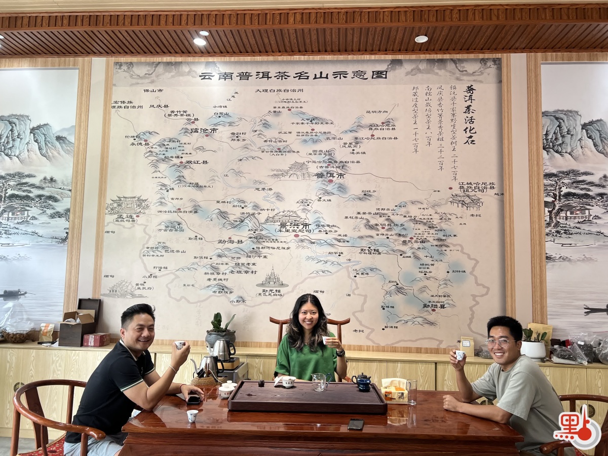 在勐海,我認識了詠春茶廠的一家人——二哥、朗秋和李紅。他們在2020年建立了標準化的加工廠,不斷鑽研茶學,也四處與茶農交流、參加比賽與評比。他們在茶室牆上掛着一幅雲南普洱茶名山圖,看着地圖,我對那些還不熟悉的寨名充滿好奇。雖然它們現在只是紙上的一個點,但我渴望在未來的日子裏,能慢慢走進每一個山頭,去了解它們的特點。