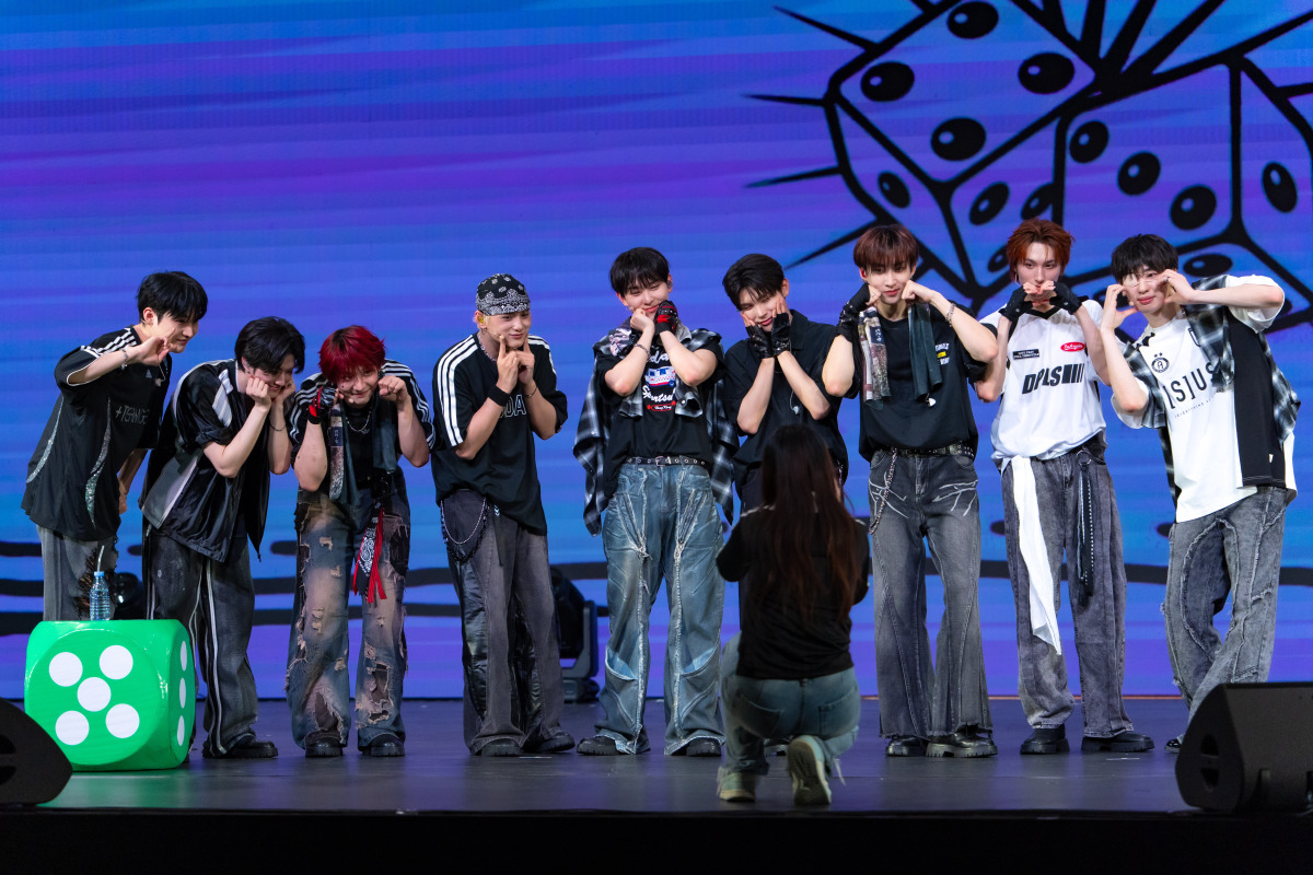 見面會前,成員接受媒體訪問。香港成員SING表示回家演出心情緊張又新鮮,「大家好,這次終於回到香港和大家見面,其實我們已經有好長的一段時間沒來香港,我這次回來待了一星期,到處走走逛逛,也吃了很多美食,真的很開心,好幸福。這次我最希望的就是能和大家玩得盡興,而且不知不覺已經3周年了,未來的日子也想與大家一起走,希望大家每天都能過得開心。」LEO則憶起兒時到訪海洋公園的回憶。提到早前以AI拍攝MV,WAIN笑言AI版的自己模樣相似,但動作充滿AI感。隊長LEX透露成團3周年計劃正在籌備中,請大家期待。