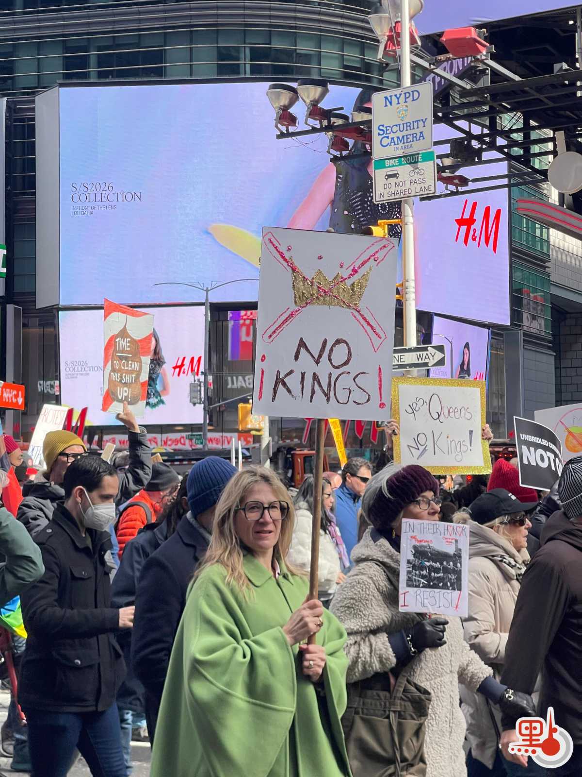身處紐約的記者看到,示威民眾高舉「No Kings」(無國王),停止美以伊衝突,釋放馬杜羅,揮舞「停止ICE(美國移民及海關執法局)」等標語。