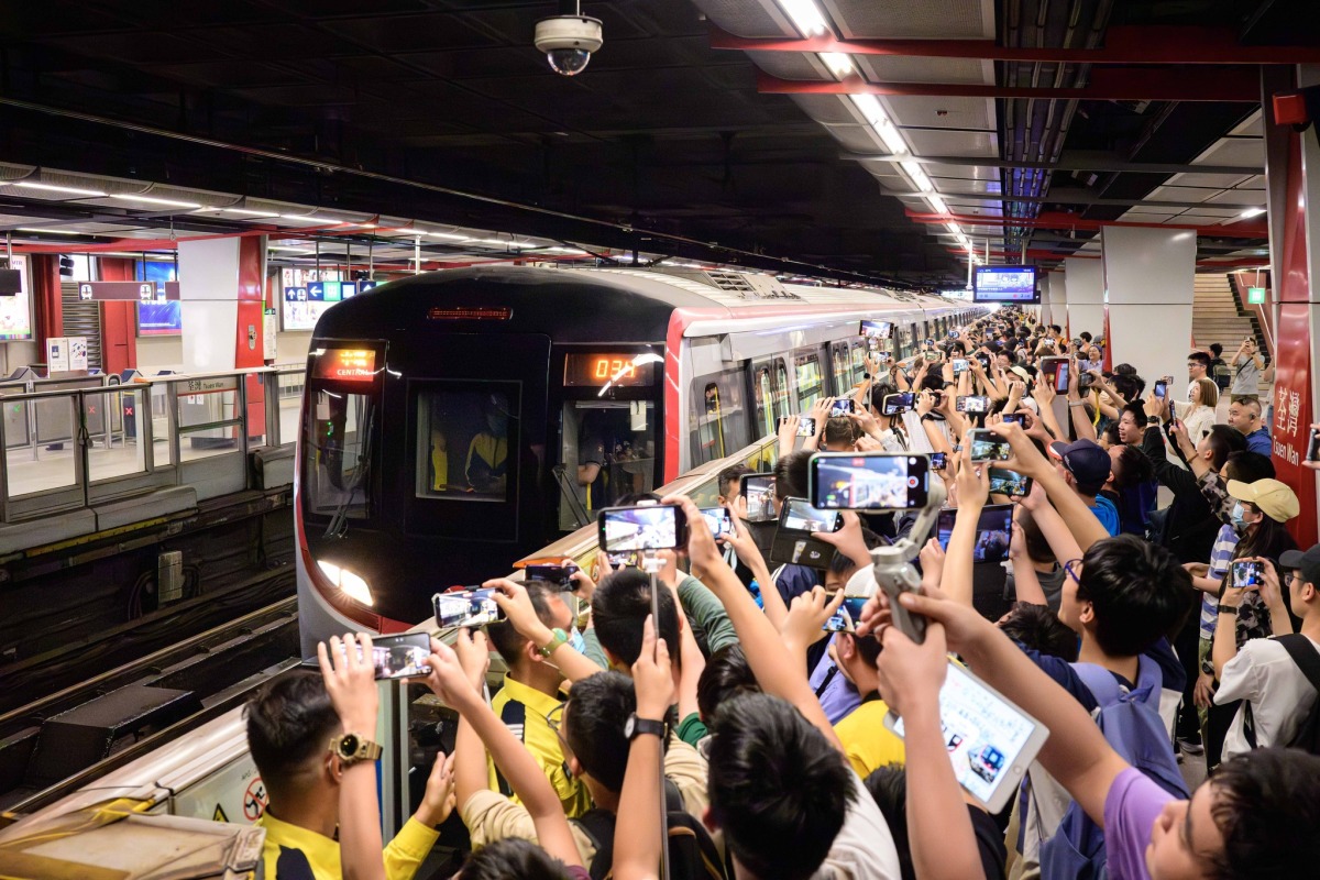 【點新聞報道】港鐵荃灣綫新信號系統已於本月投入服務,而首列使用新信號系統的市區綫新列車Q-train今(29日)早正式服務乘客。新列車於早上10時57分由荃灣站開出前往中環站方向,有百多名鐵路迷在荃灣站等候,見證新列車在荃灣綫首航。港鐵表示,新列車今日運作大致暢順。