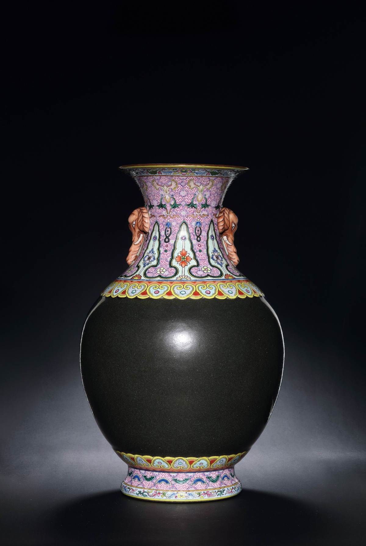 此次春拍有500餘件古董藏品,分中國古董珍玩、物道:中國高古藝術珍品、頤華:重要宮廷藝術珍品選粹三個專場拍賣。保利香港拍賣中國古董珍玩部高級專家陳依依介紹,清乾隆的廠官釉加洋彩披肩花卉山字紋太平有象雙象耳尊以洋彩搭配茶葉末釉,並融入西畫陰影處理技巧,融匯中國傳統與西洋藝術的精粹,頸部兩側各貼塑一象耳,寓意太平有象。