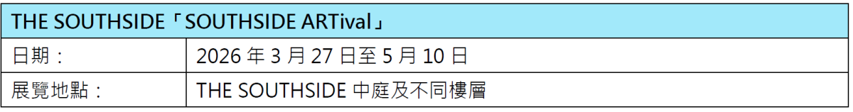 即日起至5月10日,「SOUTHSIDE ARTival」於THE SOUTHSIDE商場中庭及不同位置展示超過30隻藝術蛋裝置。參與單位來自不同界別,涵蓋本地藝術家、時裝設計師、多媒體創作者、插畫家、書藝工作室、建築設計師及南區學生等,運用不同物料及風格,融合時裝、環保、霓虹、雕塑及多媒體等多元美學,創作出風格各異、匠心獨運的藝術蛋裝置,為香港3月增添獨一無二的藝術色彩。