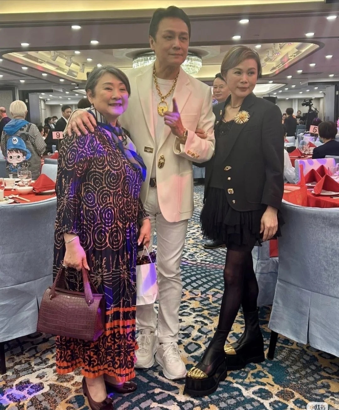 楊仲恩一套白色西裝打扮醒神,更滿場飛招呼賓客。到賀嘉賓包括向華強、陳欣健、葉子楣、李龍基、黃錦燊、周美鳳、陳榮峻與太太吳香倫、吳麗珠、黃允材、舒雅頌、導演麥當傑、魏秋樺、吳君如胞弟吳君祥、詹秉熙、林寶玉,古天樂媽媽與佘詩曼媽媽,以及冬嬸等,濟濟一堂。