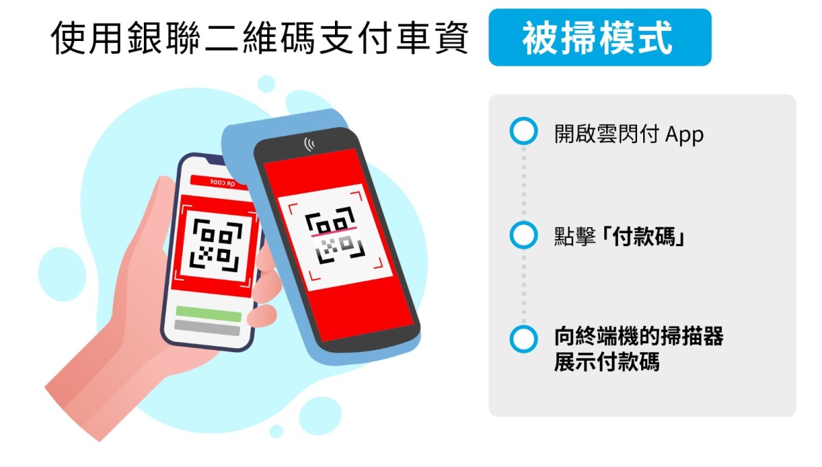 • 通知司機以銀聯二維碼支付車資