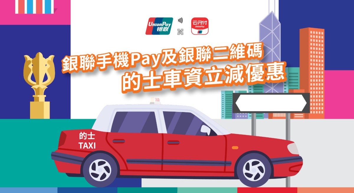 銀聯國際表示,市民乘搭的士時,無論車輛安裝的是哪一類電子支付方式,均適用於銀聯用戶。由4月1日起至5月5日,銀聯持卡人凡透過Apple Pay、Samsung Pay和Huawei Pay等銀聯手機Pay或雲閃付App等支援銀聯二維碼的應用程式,成功支付的士車資即減5港元。每卡每日可享優惠1次,推廣期內最多享優惠10次,讓日常出行更輕鬆實惠。