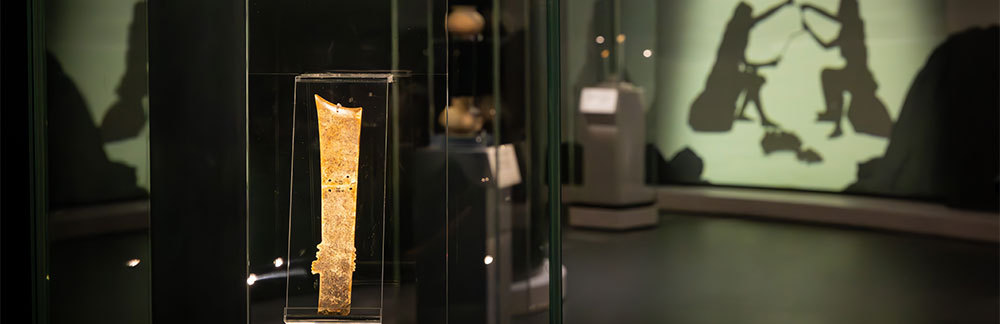 「多元一體的中華文明」及「歷史源流」展區追溯香港悠久的歷史源流,其中亮點展品──南丫島出土的國寶級「牙璋」,有力佐證中原禮制南傳與中華文明多元一體的深厚內涵。「李鄭屋漢墓」出土文物、宋元時期「聖山遺址」的陶瓷遺存,以及明代竹篙灣出土的青花瓷片等珍貴文化遺產,進一步見證香港早於千百年前已植根中華文明沃土,自古以來與祖國同根同源。