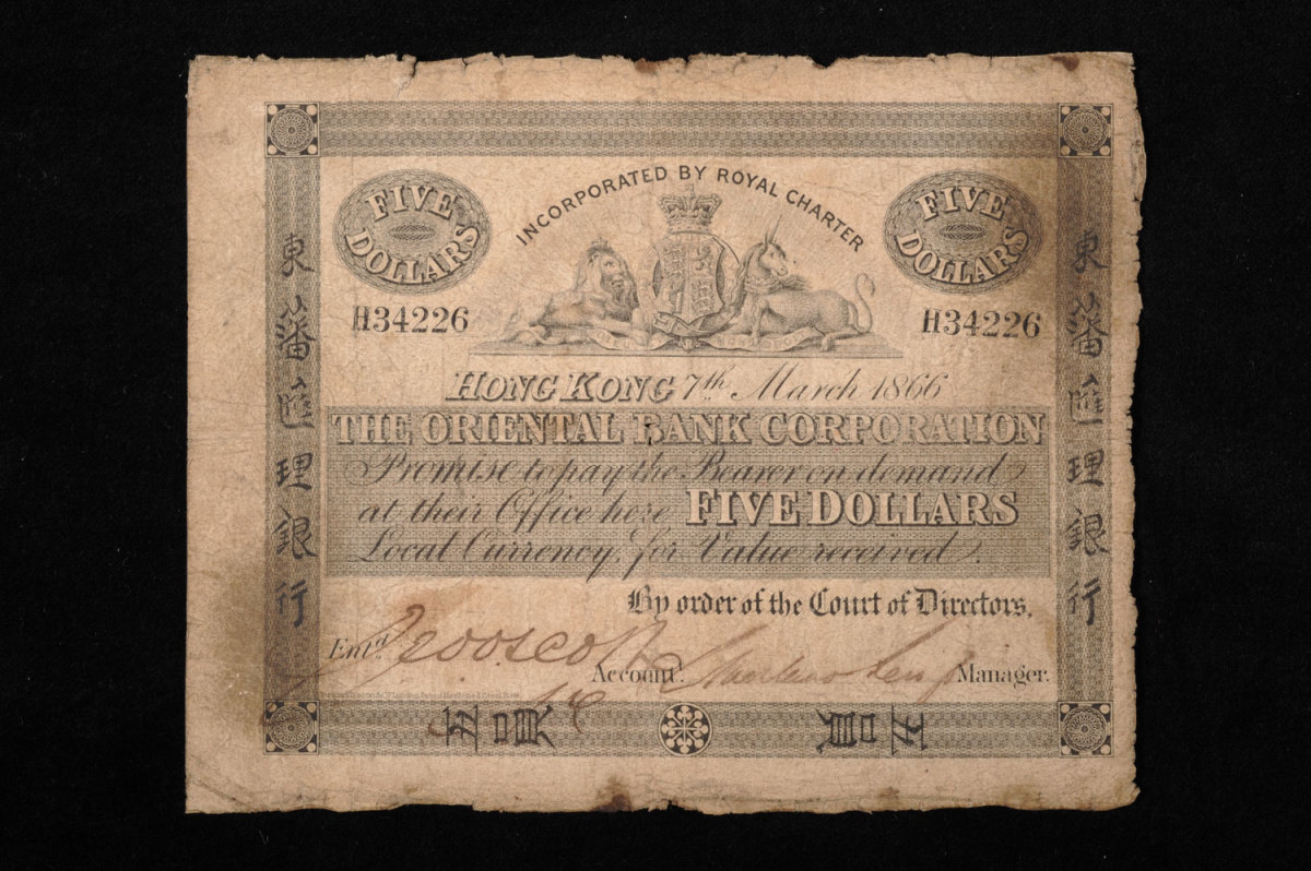 「摩登都市」展區展示香港在華洋互動中形成的獨特社會面貌,並始終保留深厚的中華文化底蘊,重點展品有香港首家發鈔銀行東藩匯理銀行於1860年發行的鈔票,以及由孫中山先生親自下令創辦的《中國日報》。