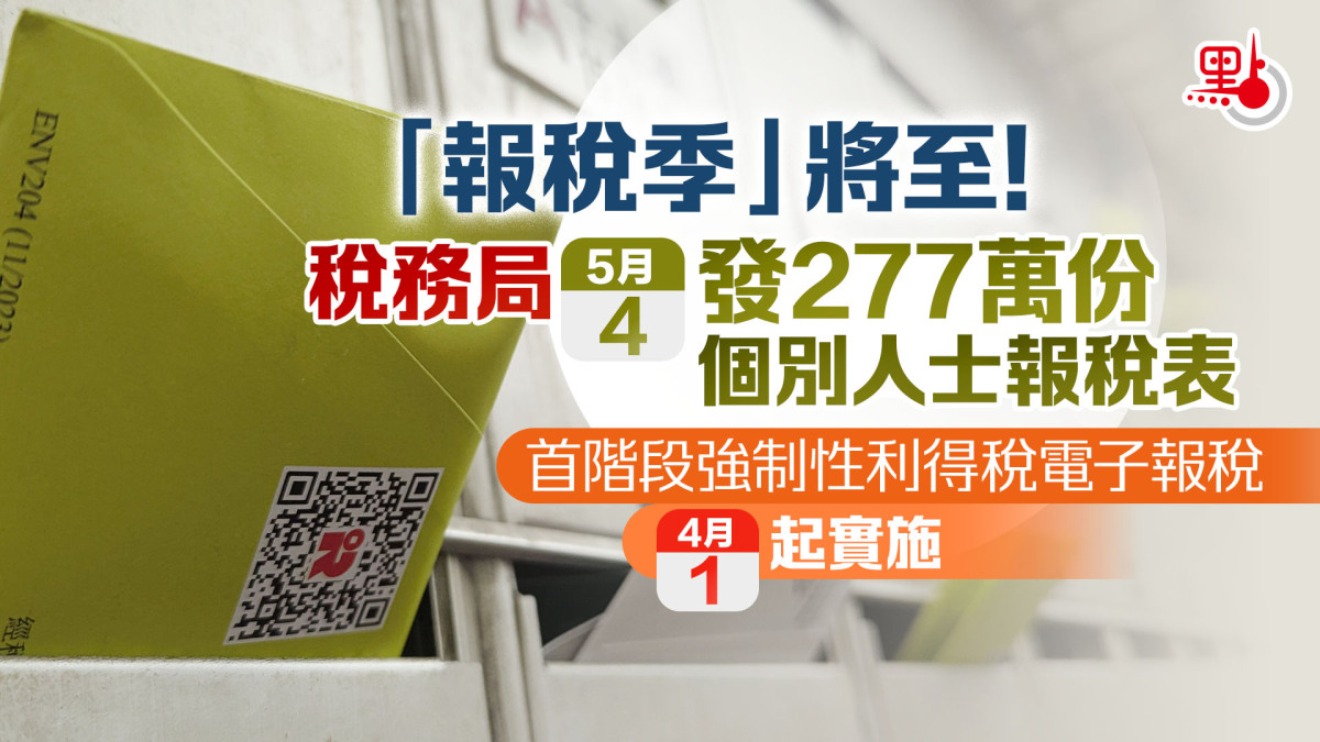 【點新聞報道】稅務局今日(4月1日)發出約27萬份2025至26課稅年度利得稅報稅表、12萬份物業稅報稅表及34萬份僱主報稅表,並將於5月4日發出約277萬份個別人士報稅表。納稅人及僱主一般須於報稅表發出日起一個月內填報。就已委任稅務代表的個案,提交報稅表期限載列於稅務局網站的「整批延期提交報稅表的通函」。