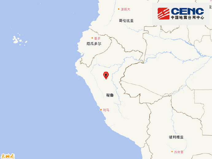 秘魯發生6.0級地震,震源深度110千米。(中國地震台網)