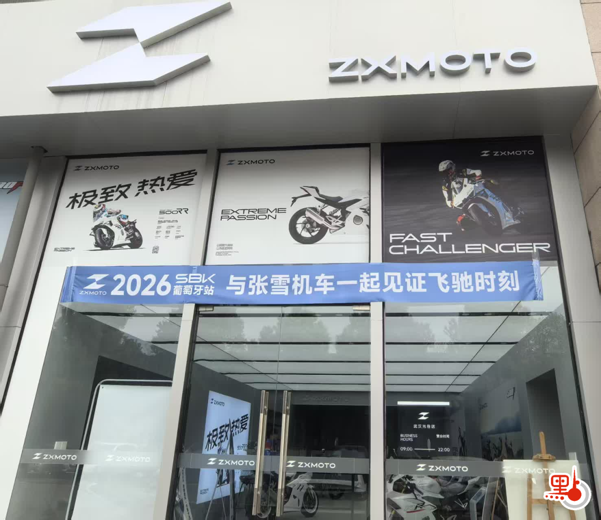 4月2日,點新聞記者在武漢光谷一家「張雪機車」門店採訪了解,「張雪機車」在WSBK賽場實現兩連勝後,這裏銷售火爆,門店特別在門面上方掛了寫着「與張雪機車一起見證飛馳時刻」的藍色橫幅。奪冠當日,銷售員直到凌晨還在忙着處理與顧客洽談訂單,「半夜還有客戶甩單過來」。