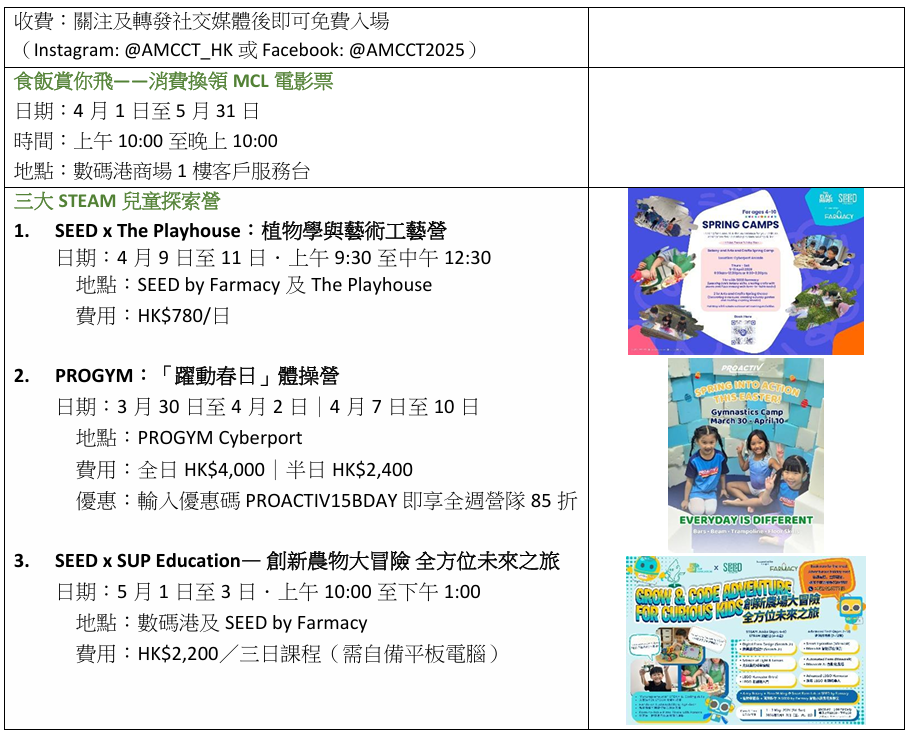 Fun at Cyberport Easter Guide《玩轉數碼港復活節攻略》時間表一覽