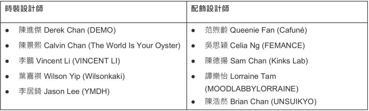 參展的10位本地設計師包括: