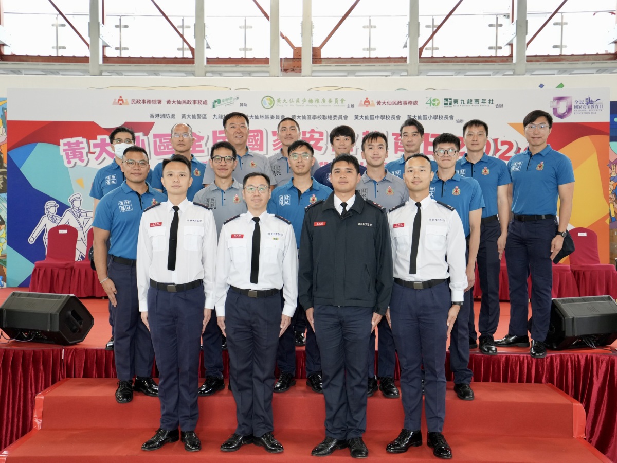 黃大仙民政事務專員胡鉅華,中央政府駐港聯絡辦九龍工作部處長何小松,立法會議員洪錦鉉,消防處九龍總區助理處長曾永鴻,警務處東九龍總區指揮官謝翠恩,黃大仙警區副指揮官沈靜芬,康文署黃大仙區副康樂事務經理梁耀南,黃大仙區中學校長會主席李宛儀,黃大仙區小學校長會主席林偉才,九龍社團聯會黃大仙地區委員會主任何漢文,黃大仙區步操推廣委員會主席黃錦財、執行委員會召集人李德康、司庫楊諾軒、委員莫仲輝及東九龍青年社社長馮錦濠擔任比賽頒獎嘉賓,共同見證黃大仙區青少年的茁壯成長。