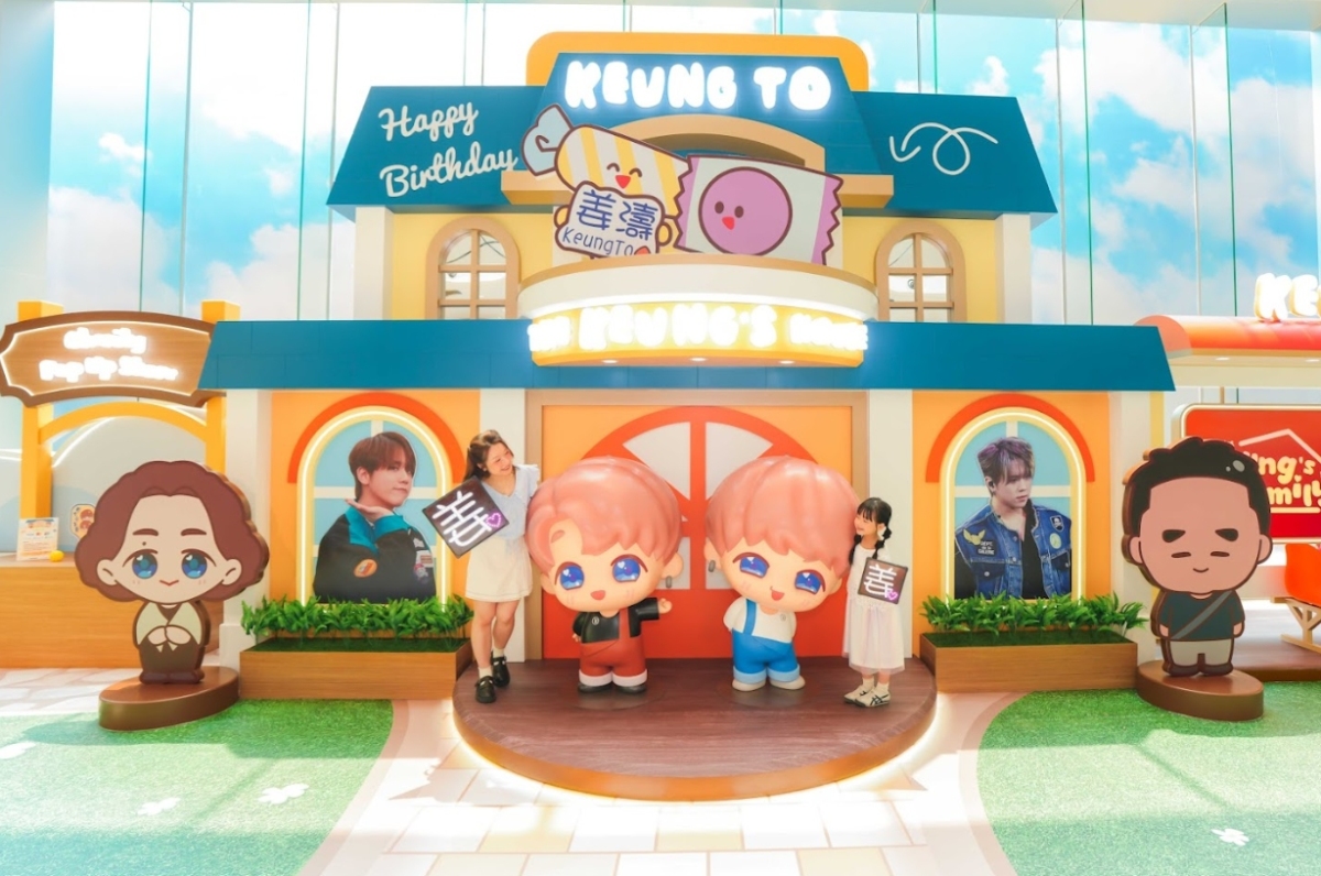 延續廣受歡迎的動畫《The Mini Keung Show》可愛風格,The ONE中庭以溫潤大地色系搭配標誌性桃橙與海藍色調,營造溫馨愜意的「The Keung』s Family」場景。全新角色「姜爸」「姜媽」與換上新造型的小姜姜、小濤濤敞開家門,帶領薑糖走進四大幸福打卡點——從後援會專屬應援電車及車站,到緊貼姜濤最新運動嗜好的匹克球角落,每個細節均喚起集體回憶。